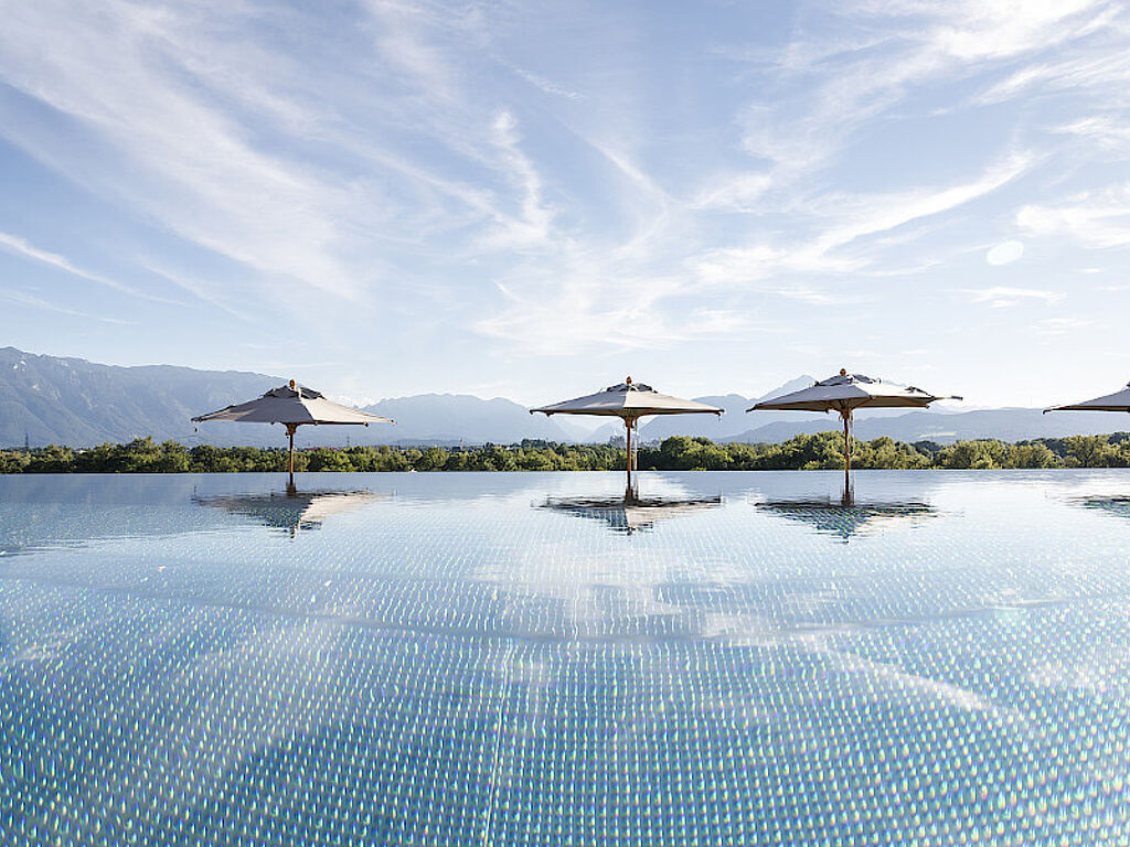 Ein wahres Wellnesserlebnis ist auch der DorfSPA, ein Hang mit verschiedenen Saunen, einem herrlich beruhigenden Ruheraum mit Hängematten und Blick ins Grüne. Vitarium und Private Spa komplettieren das Programm. Im DorfSPA Garten mit Familiensauna begeistert der neue, 25 Meter lange Infinity Pool. Für Aktive gibt es einen Fitnessbereich und Aktivraum.