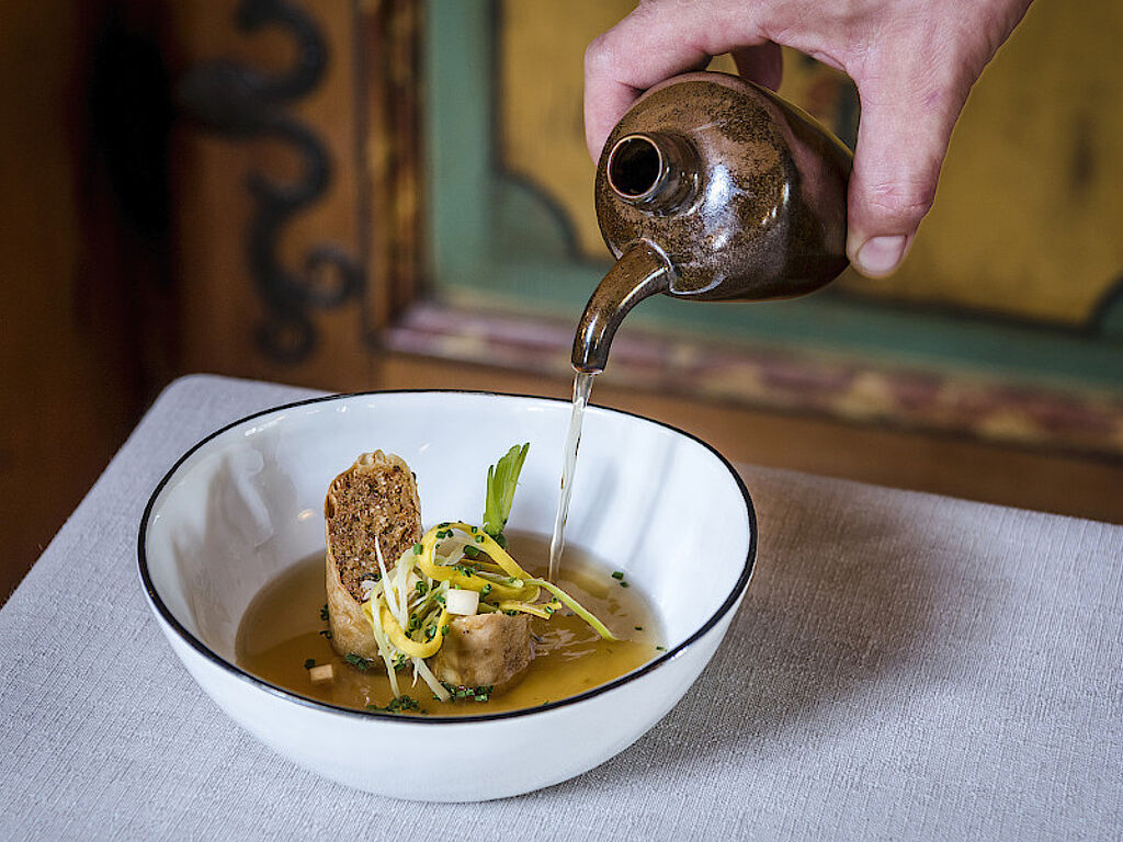Das Leben verkosten: Ob im Hauben.Gasthof oder beim FRANZ. Der Wirt. Vom regionalen Frühstück, über die reichhaltige Nachmittagsjause bis hin zu feinen Köstlichkeiten beim 5-Gang-Haubenmenü abends – die richtigen Gaumennerven zu treffen, ist dem Gmachl seit Generationen ein wichtiges Anliegen. Küchenchef Andreas K. legt Wert auf beste Rohstoffe, dörflich-urbane Rezepturen und natürliche Geschmacksnoten. Zum Genussdorf Gmachl zählen zudem ein origineller Dorfladen, eine hauseigene Brauerei und eine Metzgerei.