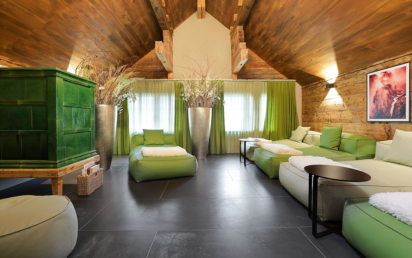 The BÄREN SPA with sauna, steam bath and experience showers awaits guests under the roof of the 400-year-old hotel. A traditional Appenzell tiled stove in the relaxation room creates an atmospheric ambience. The spa can be privatized exclusively on request.