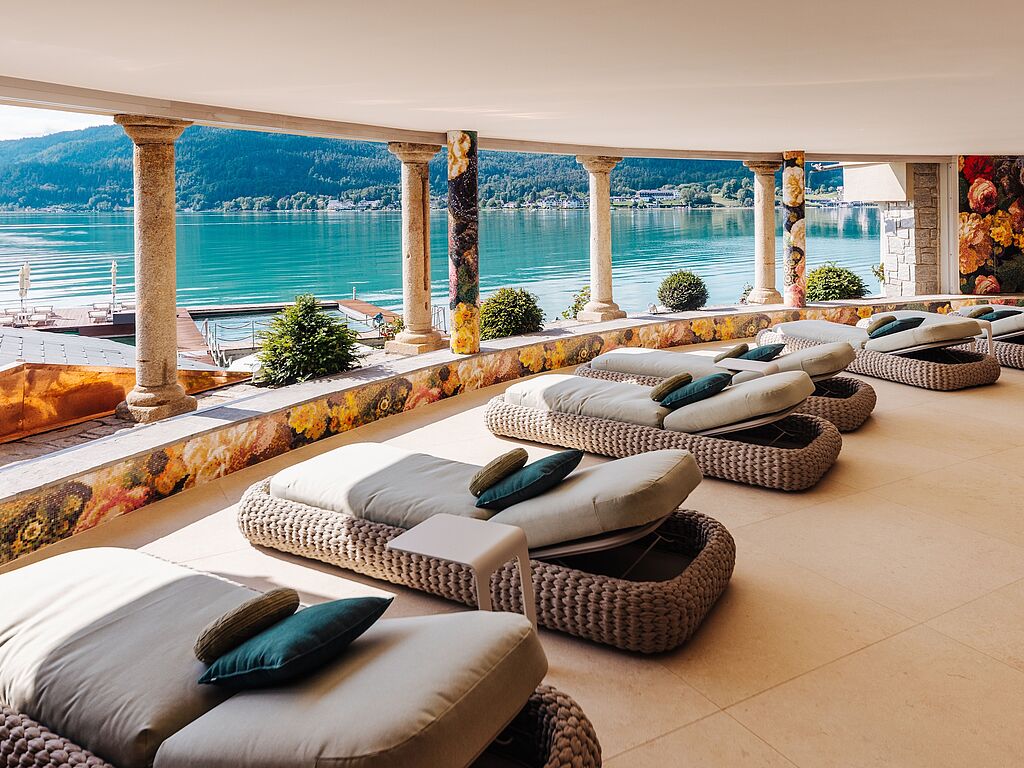 Situated by the lake and built on rock - the location of Seefels Castle is uniquely beautiful. This beauty is continued in the Seefels Spa: in the exquisite treatment cabins, the stylish saunas with panoramic views, the elegant relaxation rooms and the private beach directly on Lake Wörthersee.