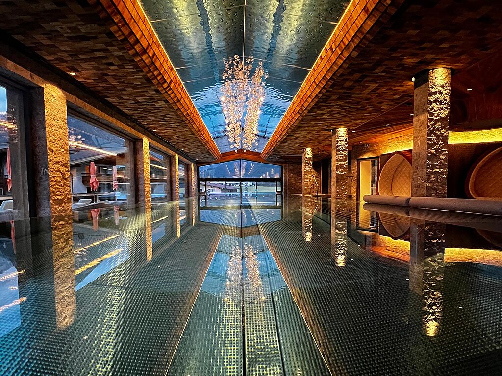 Seit Juli 2025 krönt das neue Sky Spa die 3.500 m² große Wellnesswelt: Infinity-Außenpool, Panorama-Innenpool und spektakuläre Ausblicke auf Karwendel und Rofan. Ergänzt wird dies durch die Wellness-Alm mit zwei Bio-Badeteichen im großzügigen Garten mit Loungemöbeln, großem Outdoor-Whirlpool und 8 Saunen – von der Finnischen Außensauna bis zur goldenen Himalaya-Sauna. Großzügige Relax-Zonen bieten Kraftorte zum Auftanken, ob auf der Stillen Alm am Kamin, in neuen Relax-Lounges zum entspannten Austausch oder in neuen Ruhe-Oasen, die zum stillen Abschalten einladen. Auf der temperierten Sky Spa Relaxterrasse lockt Tagträumen mit Bergblick rund ums Jahr.