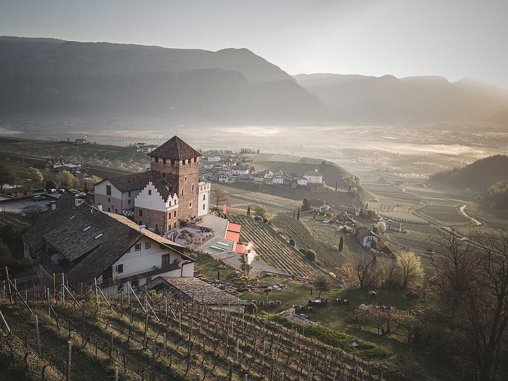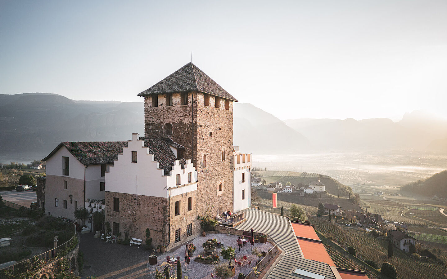 Im 13. Jahrhundert ein Wohnturm in einer Landschaft der ungezählten Burgen, im 19. Jahrhundert bereits ein Schloss und 80 weitere Jahre später schon in den Händen der Familie Dellago. Auf den verschlungenen Treppen hat man das Gefühl, noch die historische Burg zu erobern, versinkt aber in seiner eleganten Suite im eleganten behaglichen Ambiente. Vom weichen Bett mit Zirbenkissen verziert gilt der letzte Blick vor dem Einschlafen den glitzernden Lichtern von Bozen und morgens strahlt die Sonne über die satten Weinreben. Beste Entspannung findet man im Wellnessbereich. Der Outdoor-Wellness-Bereich wurde mit einer Fass-Sauna und einem Pavillion für Massagen erweitert.