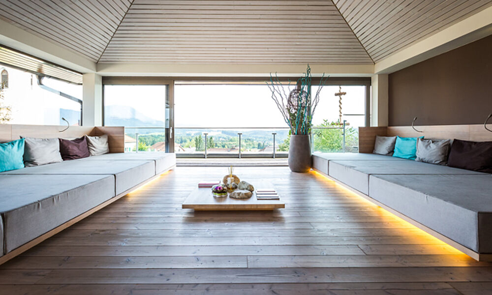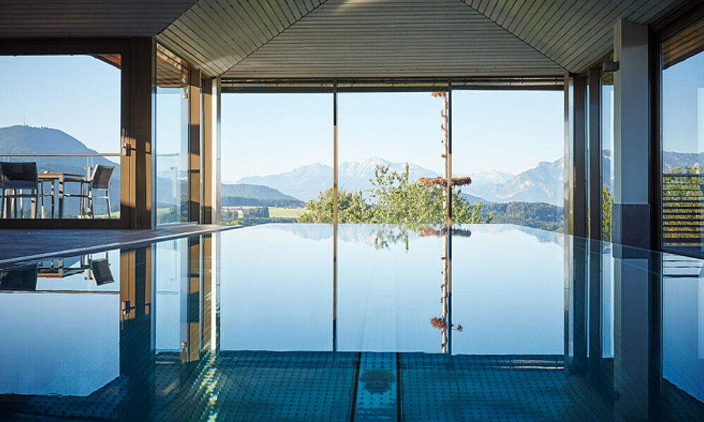 Ganz puristisch erlebt man das Pamorama-Spa hoch oben auf dem Dach des „Klosterhofes“ mit einem atemberaubenden Blick auf die Salzburger Bergwelt. Mitten drin ein offener Kamin und kuschelige Betten zum Relaxen. Wer Yoga-Fan ist kann sich morgens schon mal fit machen. Golfer zieht es in die Saunalandschaft oder zu Massagen – und Beautyanwendungen. Die eigene Naturkosmetik Gmachl „Wundervoll“ mit Rosenblüten, Lavendel, Olivenöl und Alpenkräutern dufte im ganzen Haus.