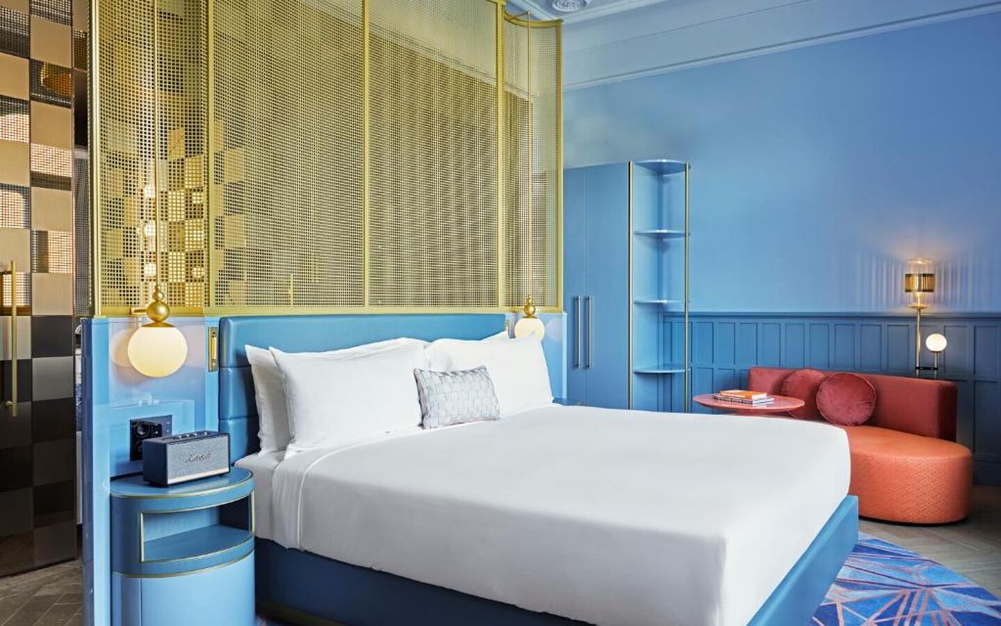 Mit 151 Zimmern und Suiten auf fünf Stockwerken strahlt das Hotel trotz seiner Größe eine intime Atmosphäre aus. Besonders hervorzuheben sind die Zimmer, die durch Designelemente wie schwarz-weiß geflieste Wände, inspiriert von der ungarischen Schachtradition , und verspielte Spiegel, die Zsa Zsa Gabor würdigen, glänzen.
