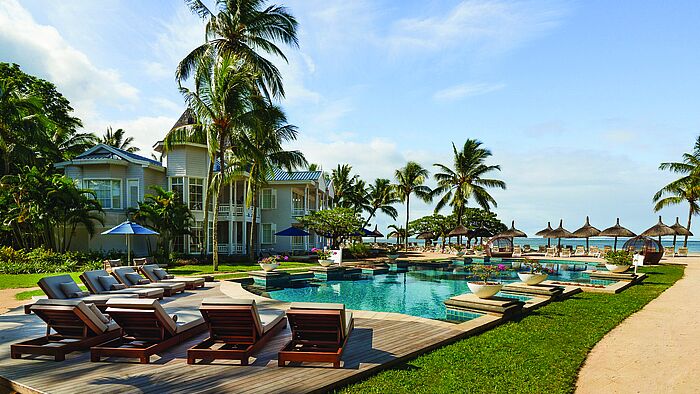 Der ausschließlich erwachsenen Gästen vorbehaltene Bereich umfasst eine Auswahl an Suiten, die elegant in U-Form um einen beheizten Pool angeordnet sind. Diese besondere Architektur schafft ein privateres, intimeres Ambiente mit Blick auf den Ozean. Ein persönlicher Butler-Service am Pool, erfrischende Cocktails und Snacks an der Bar, besondere Aufmerksamkeiten auf dem Zimmer sowie ein dedizierter Resident Host zählen zu den Highlights des Adults-only-Erlebnisses im Heritage Le Telfair Golf & Wellness Resort. Mit seinem minimalistischen Stil und der eleganten, weißen Architektur empfängt das Heritage Le Telfair seine Gäste in einer der bezauberndsten Umgebungen der Insel. Kulinarische Genusserlebnisse, luxuriöse Wellness-Angebote sowie der exklusive Zugang zum Le Château Golf Course – dem besten Golfplatz des Indischen Ozeans – und zu den La Réserve Golf Links, dem ersten und einzigen zeitgenössischen Links-Course der Region, runden das Angebot ab.