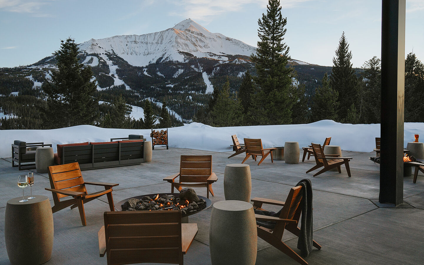 Anschließend kann man den Tag bei Après-Ski im erholsamen Spa, im hochmodernen Fitnesscenter oder in einem der hauseigenen Restaurants ausklingen lassen. Das Resort umfasst sechs Bars und Restaurants, darunter das „Akira Back Restaurant“, das einen perfekten Mix von Kultur und Geschmack nach Montana bringt. Kulinarisches Mastermind ist der ehemalige Profi-Snowboarder Chef Akira Back, der mit seinen kühnen Interpretationen der globalen Küche seit über