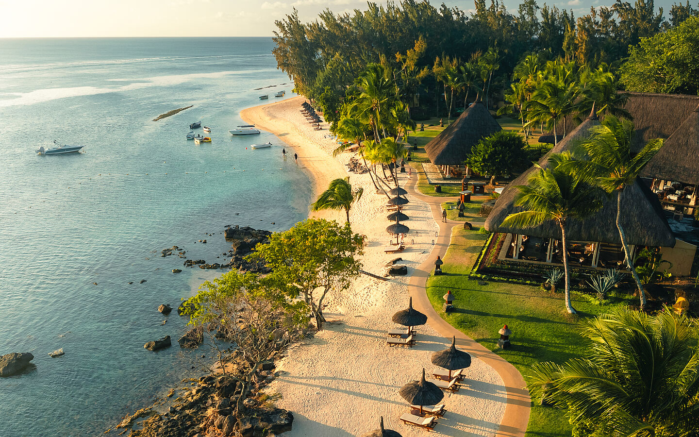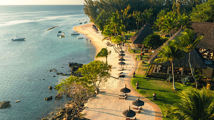 An der unberührten Küste von Turtle Bay entfaltet The Oberoi Beach Resort, Mauritius, seine Magie: Mit 71 Pavillons und Villen – eingebettet in weitläufige, subtropische Gärten – grenzt das Resort an eine türkisfarbene Lagune und bietet zugleich absolute Privatsphäre und spektakuläre Blicke auf den Indischen Ozean. Die Architektur vereint afrikanische und asiatische Einflüsse – Strohdächer, Naturmaterialien und eine Gestaltung, die sich elegant in das üppige Grün und die vulkanischen Skulpturen der Umgebung schmiegt. Kulinarisch zeigt sich das Resort von seiner vielfältigsten Seite: Im Hauptrestaurant genießt man morgens internationale, kreolische und indische Köstlichkeiten, stets begleitet von Meeresbrise und Meerblick, abends verwandelt sich derselbe Raum bei Kerzenlicht und spiegelnder Poolanlage in eine Bühne der Romantik. On The Rocks bietet leichte Gerichte und Meeresfrüchte-Variationen direkt über dem Wasser.