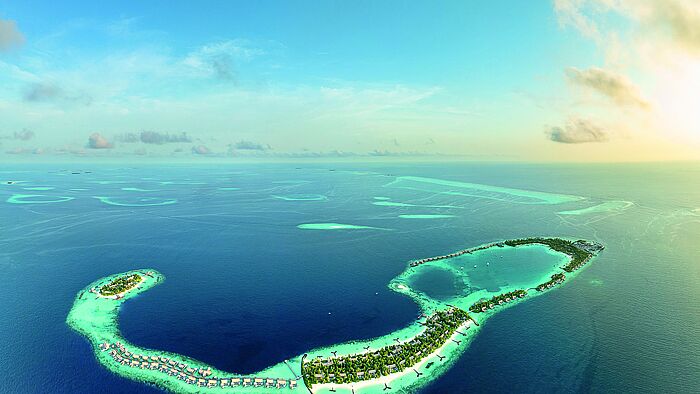 Zurück in den Villen, die sich als Zonen der Entschleunigung darstellen : Jede ab 234 Quadrat- metern, in ein-, zwei- oder drei-Zimmer-Konfigurationen. Ob Strand-, Riff- oder Overwater-Villa: Private Decks mit eigenem Infinity-Pool und unverbaubaren Ausblicken auf die Lagune. Die Innenräume sprechen von subtiler Raffinesse – Naturmaterialien, sorgfältig proportioniert, durchdrungen vom Licht des Meeres. Zum Sonnenuntergang verwandelt sich die Energie. Der Himmel taucht in Samt, Kerzen flackern am Wasser, Stimmen werden leiser. Ein Dinner für zwei am privaten Strand. Das stille Innehalten auf der Terrasse. Champagner unter tropischen Sternen. Momente, die im Gedächtnis weiterleben.