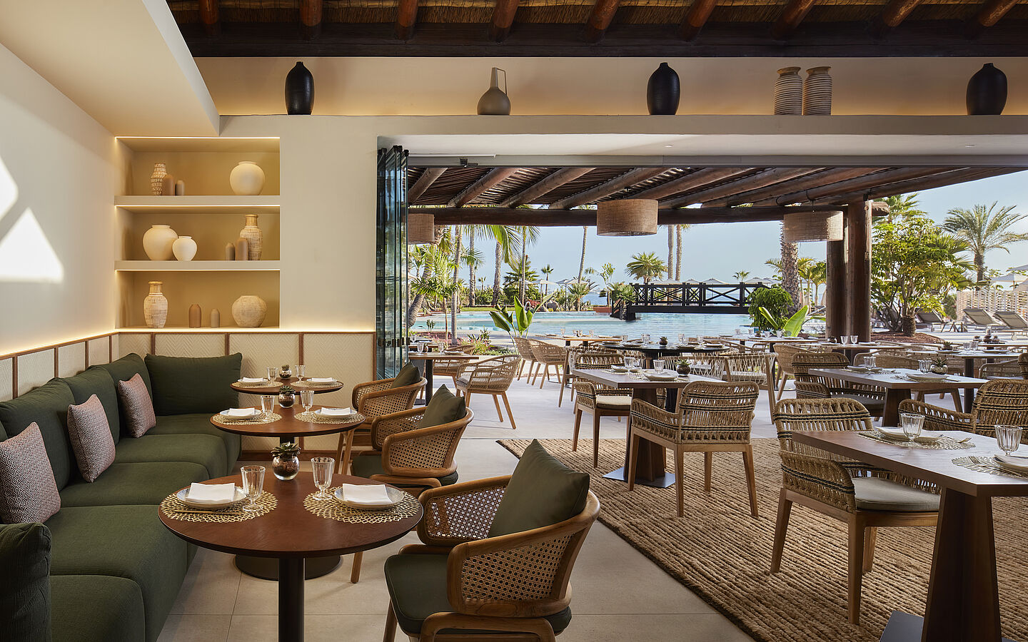 Das Resort liegt an der malerischen Küste im Süden von Teneriffa und bietet eine idyllische Oase, nur 15 Autominuten vom internationalen Flughafen Teneriffa Süd entfernt. Es verfügt über 284 Zimmer, darunter 20 Suiten, die mit natürlichen Materialien wie Holz und Naturfasern elegant dekoriert sind. Die Innenräume wurden von dem preisgekrönten Architekten Melvin Villarroel gestaltet und bieten eine gelungene Kombination aus Natur und Architektur.