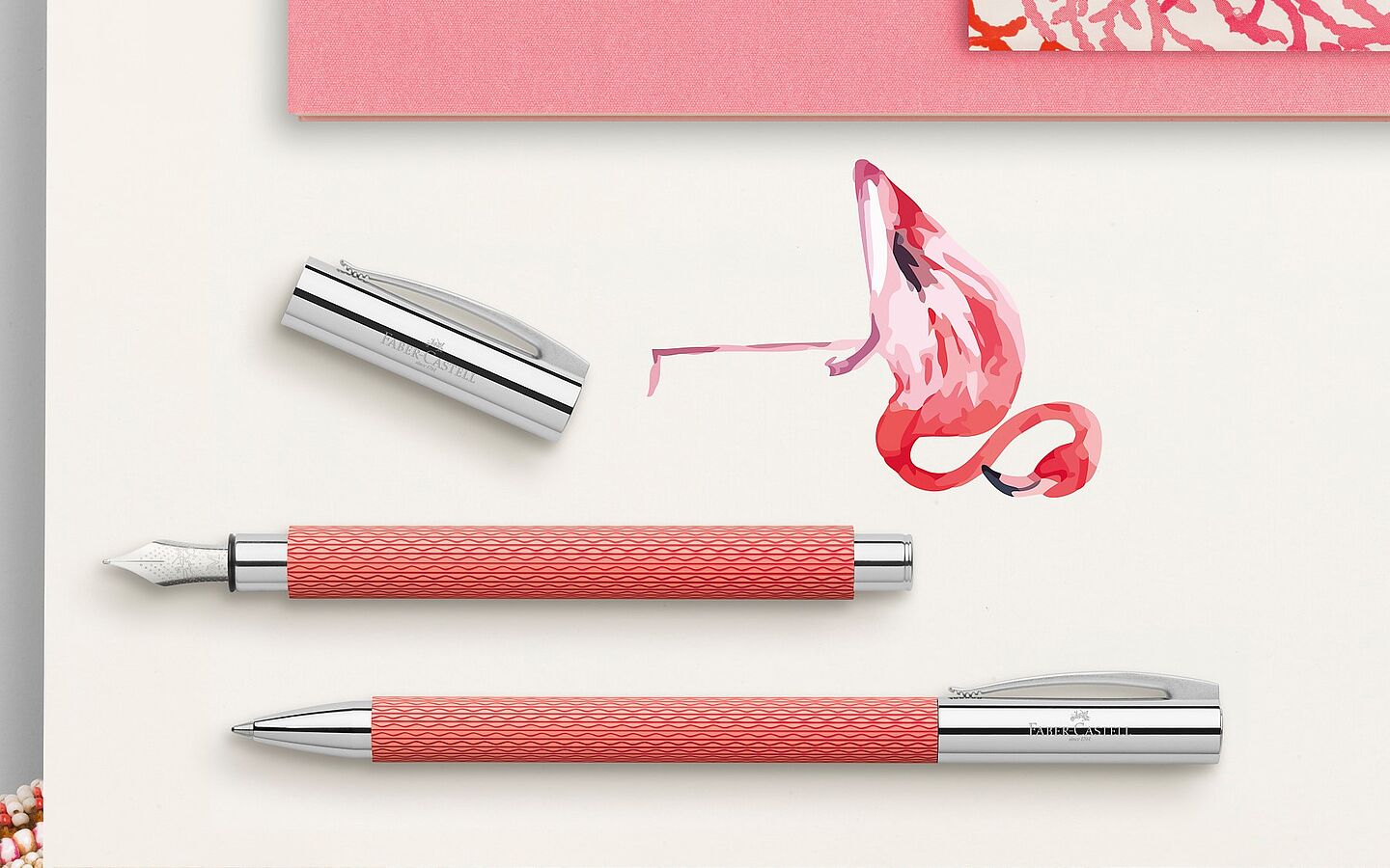 Die Inspiration für die Farbe der neuen Saison kommt aus der Tierwelt: Der Flamingo hat es uns angetan! Der extravagante, grazile Vogel schmückt als angesagtes Trend-Tier Wohnaccessoires und Kleidung und verströmt mit seinem prächtigen Federkleid in Pink und Koralle pure Lebensfreude. Und die holen wir uns jetzt auch auf den Schreibtisch: Der neue AMBITION OpArt Flamingo sorgt für karibisches Flair am Arbeitsplatz. Drehkugelschreiber und Füllfederhalter sind mit der charakteristischen Guillochierung versehen, so dass je nach Lichteinfall und Perspektive interessante Bicolor-Effekte entstehen. Das Muster hat übrigens eine besondere Geschichte: Die OpArt-Serie ist eine Hommage an die Optical Art, eine stilprägende Kunstform der Sechziger Jahre.