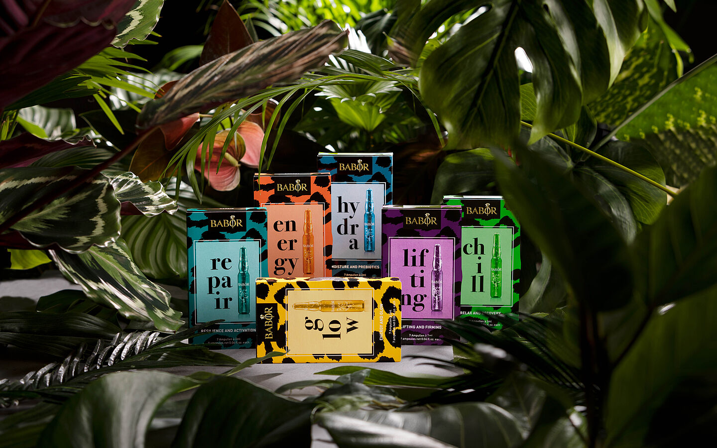 Die Special Edition der legendären BABOR AMPOULE CONCENTRATES ist vollgepackt mit Wirkstoffen, die Ihre Beauty-Power von der Leine lassen. Sechs Kuren sind auf unterschiedliche Hautbedürfnisse abgestimmt und in cooles Leo gehüllt. Sie sorgen für neue Power und Selbstbewusstsein. So fühlen wir uns schön und stark, unseren Alltags-Dschungel selbstbestimmt zu meistern.