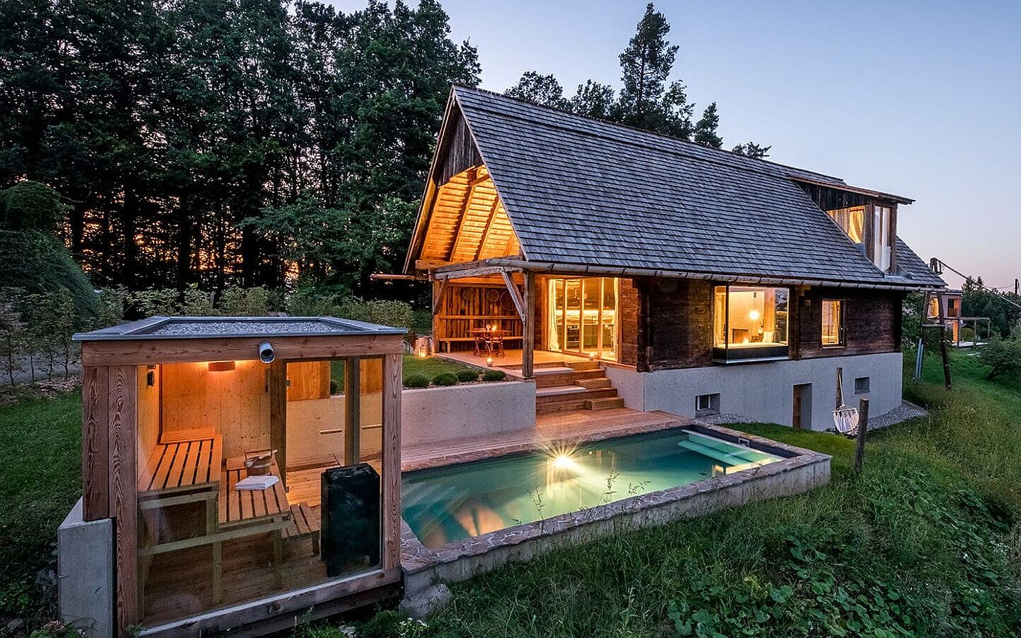 Die Premiumhäuser von PURESLeben, alle mit Sauna, Pool oder eigenem Naturbadeteich, befinden sich an den schönsten Orten der Südsteiermark. Die österreichische Antwort auf Glamping mit einem Holzdach über dem Kopf und ganz viel Natur drumherum.