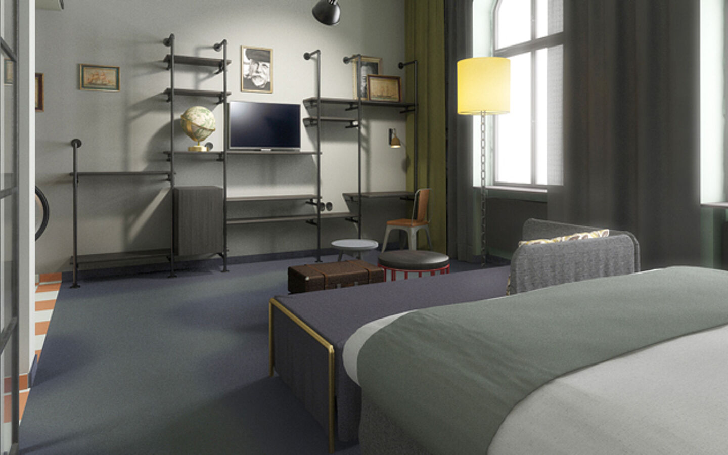 Wird im 25hours Hotel HafenCity vom rauen Leben auf See berichtet, schlagen die Wellen im neuen Kapitänsheim nebenan nicht ganz so hoch. Das denkmalgeschützte Alte Hafenamt war Anlaufstelle für Seeleute und ihre Geschichten: Das älteste Gebäude der HafenCity erzählt von großen Träumen, von Fernweh und Hoffnung – genug Stoff für das Augsburger Designteam DREIMETA um Armin Fischer. „Die Figur des alten Hafenmeisters steht hier Pate. Er hat zwar selbst die Welt noch nie bereist, aber das Wasser in seinem Hafen ist schon überall gewesen. Er ist als stiller Gastgeber an vielen Stellen im Haus anzutreffen“, beschreibt Henning Weiß, Chief Development Officer bei 25hours Hotels, die Konzeptidee. Designelemente aus der Welt des Hafenmeisters und Bezüge zum Alten Hafenamt finden sich überall: Die Rezeption etwa besteht aus alten Heizkörpern, im Restaurant erinnert die Stahl-Holz-Konstruktion der Freitreppe an die Gangway eines Schiffs, und in der Bar wacht das Konterfei des Hafenmeisters als künstlerische Interpretation an der Wand. Auch in den 49 Stuben harmoniert Neues mit Altem: Das lose Mobiliar variiert, Vintage-Objekte treffen auf neue Designentwürfe von DREIMETA Armin Fischer, Augsburg. Kein Zimmer gleicht dem anderen - aufgrund der denkmalgeschützten Immobilie hat jede Stube einen ganz eigenen Grundriss.