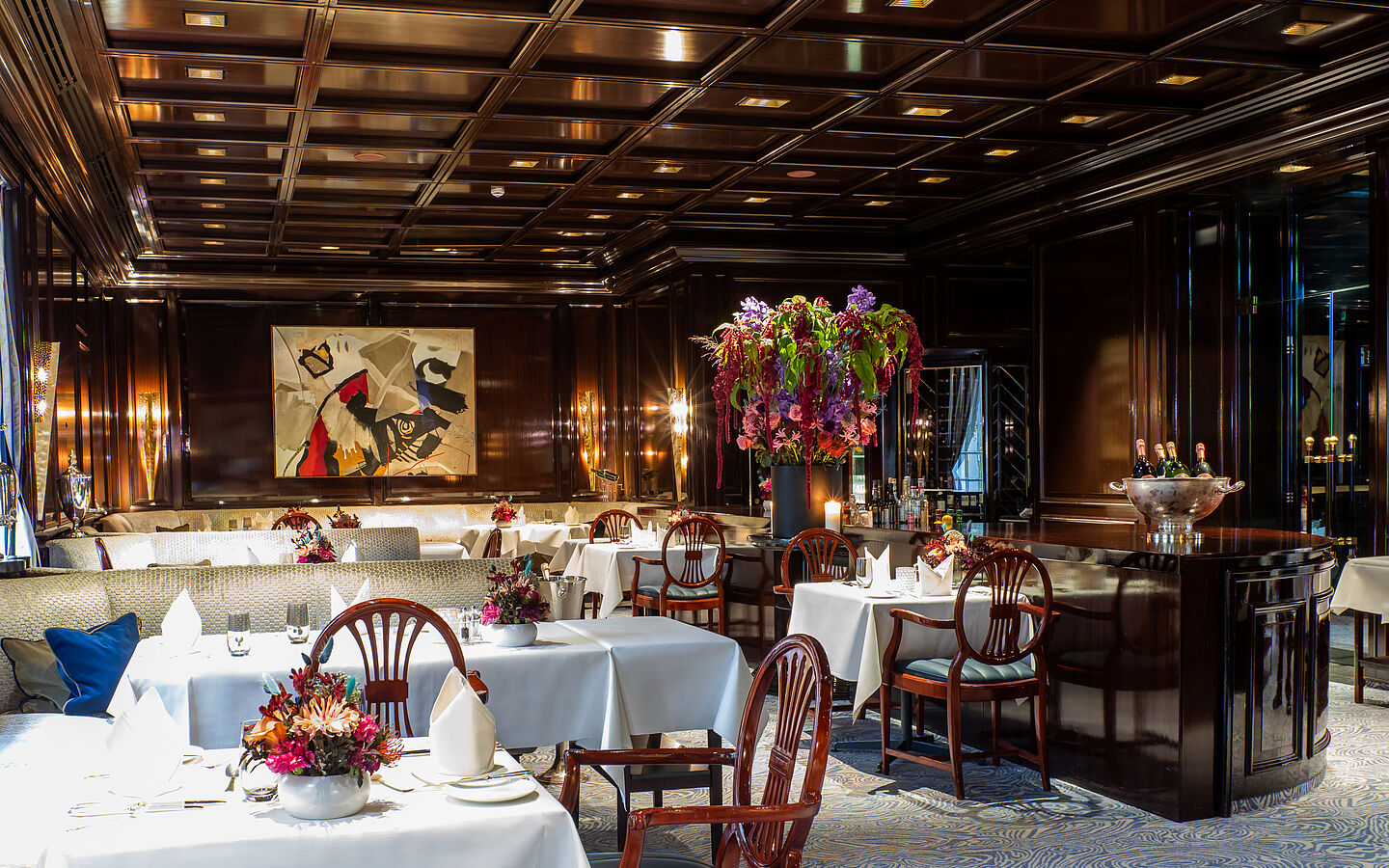 Seit ihrer Eröffnung am 12. Januar 1976 ist die Hanse Stube in ihrer heutigen Form das kulinarische Herzstück des Excelsior Hotel Ernst – ein Ort, an dem Tradition, Handwerk und Eleganz aufeinandertreffen. Aus der einstigen kleinen Grillstube entwickelte sich über die Jahrzehnte ein Restaurant, das bis heute als „gute Stube Kölns“ für feine Gastlichkeit, eine klassisch geprägte Küche und besondere Anlässe steht. In den von Graf Pilati ausgestatteten Räumlichkeiten prägen Mahagonivertäfelungen, englische Möbel, ausgewählte Gemälde sowie eigens angefertigtes Porzellan und Besteck die Atmosphäre bis heute. Die Hanse Stube verbindet bewährte Klassiker mit zeitgemäßen Akzenten und hat damit über fünf Jahrzehnte das kulinarische Profil des Hauses mitgeprägt. Heute gilt sie als feste Größe der Kölner Gastronomie – und als Aushängeschild des Excelsior Hotel Ernst weit über die Stadt hinaus.