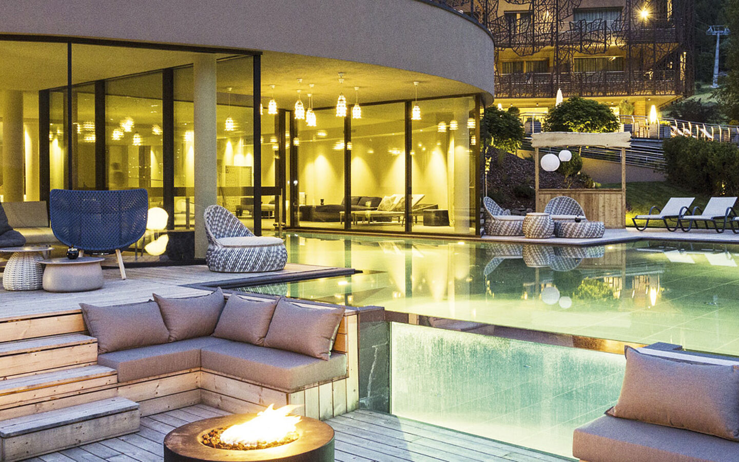 setzt man auf traditionelle Südtiroler Küche mit internationalem Twist. Geistige Nahrung verspricht die Lounge Library mit mehr als 1.000 liebevoll ausgesuchten Büchern.
