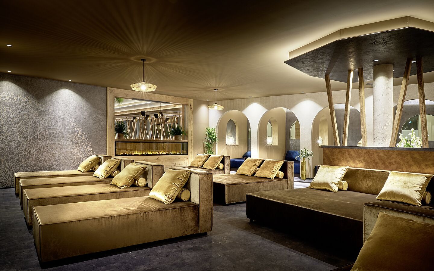 „Lumina Vitalis". Hier begegnen sich die Elemente Erde, Feuer, Wasser und Licht auf besonders sinnliche Weise. Warme Holzwände umhüllen die Gäste, Infrarotliegen spenden wohltuende Tiefenwärme, ein leise plätschernder Brunnen beruhigt, während sich über allem ein sanft pulsierendes Lichtspiel entfaltet. Dazu mischen sich feine Düfte und zarte Klänge – eine Einladung, loszulassen. Ideal, wenn die Tage kürzer werden – und Körper wie Geist neue Impulse brauchen.