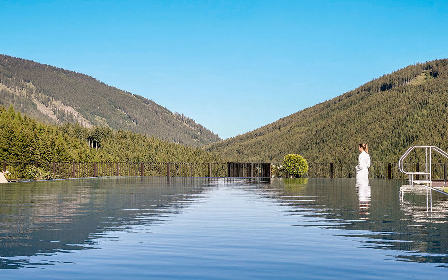 Z. B. bei einem Besuch im 5.000 m2 großen Almspa mit Infinity-Pool, Panoramasauna, Outdoor-Jacuzzis, Yoga- & Behandlungsräumen sowie einem großen Gartenbereich mit „Almstrand“. Nicht weniger genussreich geht es aber auch im Alminarium zu, wo eine feine Naturküche mit regionalen und saisonalen Zutaten zelebriert wird.