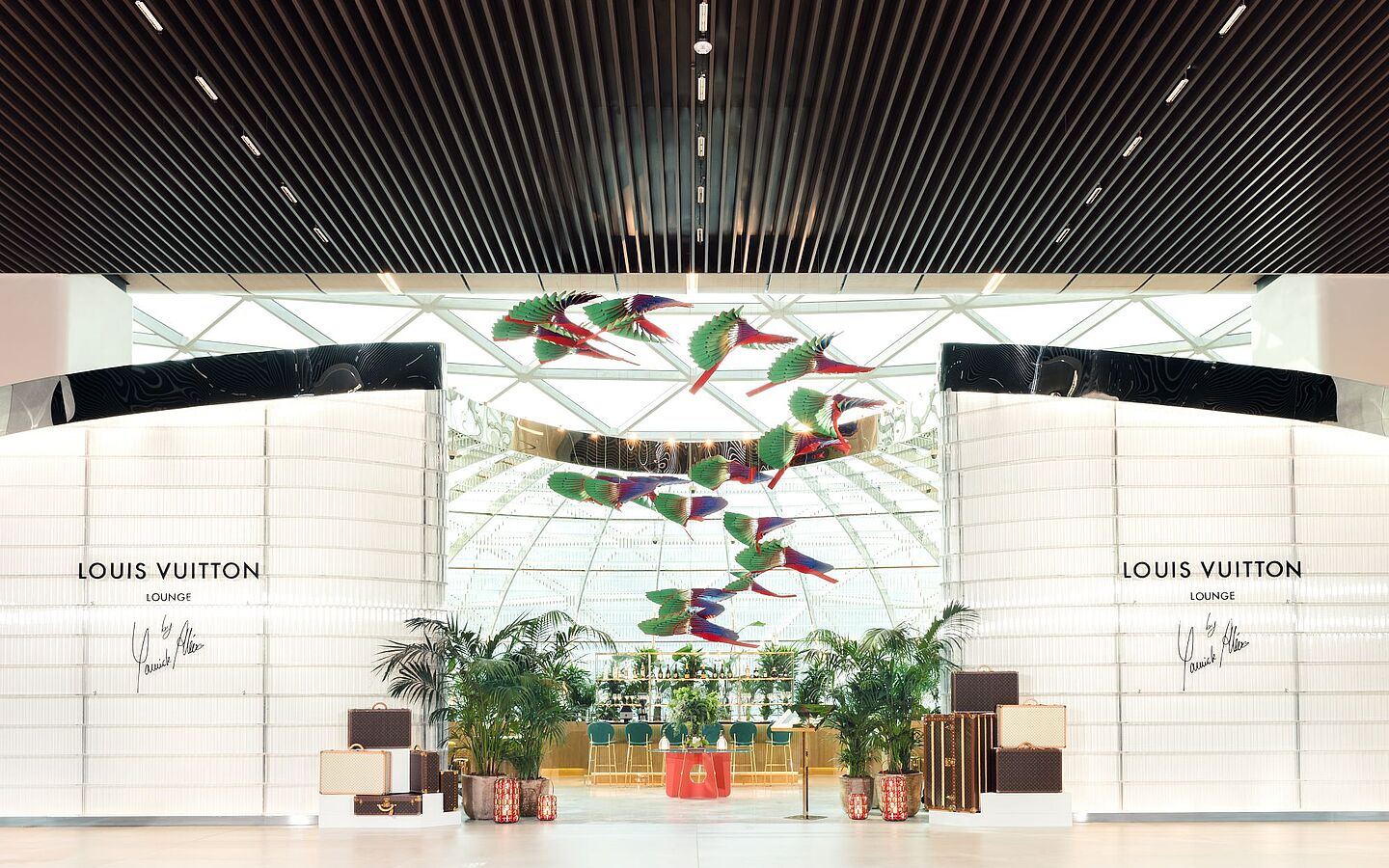 Über dem Store im Qatar Duty Free-Bereich im Central Concourse des Hamad International Airport in Doha hat kürzlich die Louis Vuitton Lounge by Yannick Alléno eröffnet. Die Lounge mit integriertem Restaurant des mehrfach mit drei Michelin-Sternen ausgezeichneten Kochs Yannick Alléno ist ein Treffpunkt für Reisende, die sich vor Abflug stärken und entspannen möchten. Sie ist rund um die Uhr geöffnet und von der Al Mourjan Business Lounge aus zugänglich. Die Gäste betreten eine moderne, tropische Umgebung, die in sanftes Licht getaucht ist und in der emblematische Louis Vuitton-Elemente schweben.