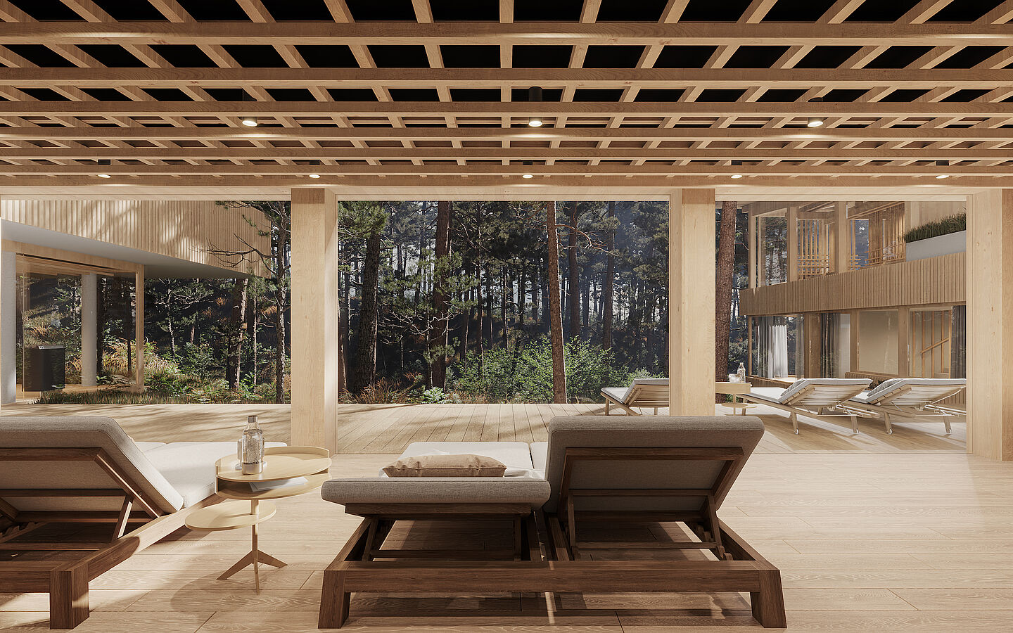 Auch das Design des knapp tausend Quadratmeter großen Spa-Bereichs sorgt für Wohlbefinden: Das modern gestaltete Badehaus aus Bergfichte und die natürlichen Materialien von Waldsauna und Spa beweisen, wie wichtig die Nähe zur Natur für die Harmonie von Geist und Seele ist. Im Ruheraum mit Blick in unberührte Waldeinsamkeit finden Gäste ihre innere Balance. Auf der Terrasse des eigenen Zimmers lässt sich der Genuss des Augenblicks beliebig fortsetzen.