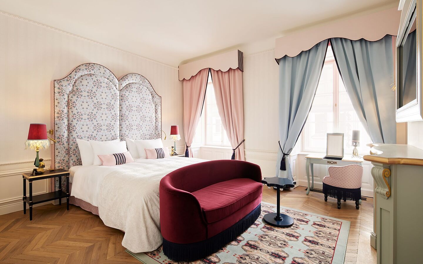 Der Charakter und der freche Luxus des Hotels spiegeln sich in den bunten Farben und Mustern des Interieurs wieder. Das einzigartige Gesamtkunstwerk trägt die Handschrift von Gabriele Lenikus, der Chefdesignerin der Unternehmensgruppe LENIKUS. Ihr einzigartiges Gestaltungskonzept trifft auf den barocken Charme des Hauses und verbindet Moderne mit Tradition. Die Fundamente des THE LEO GRAND gehen bis in die Römerzeit zurück, das Gebäude bildet ein wahres Denkmal inmitten der Wiener Altstadt. Die 76 Zimmer und Suiten des neueröffneten Hotels wurden mit viel Liebe zum Detail und Kreativität gestaltet. Die im Dachgeschoss gelegenen Zimmer geben den Blick auf die Dächer Wiens frei und bezaubern mit einzigartigem Flair. Im kaiserlichen Stil mit modernem Twist präsentiert sich das großzügige GRAND DELUXE Zimmer, das mit seinen hohen Decken zum Entspannen und Träumen einlädt. Das Prunkstück des Hauses ist die LEOPOLD SUITE, die mit einem Ausblick auf Wiens Wahrzeichen den Stephansdom besticht.