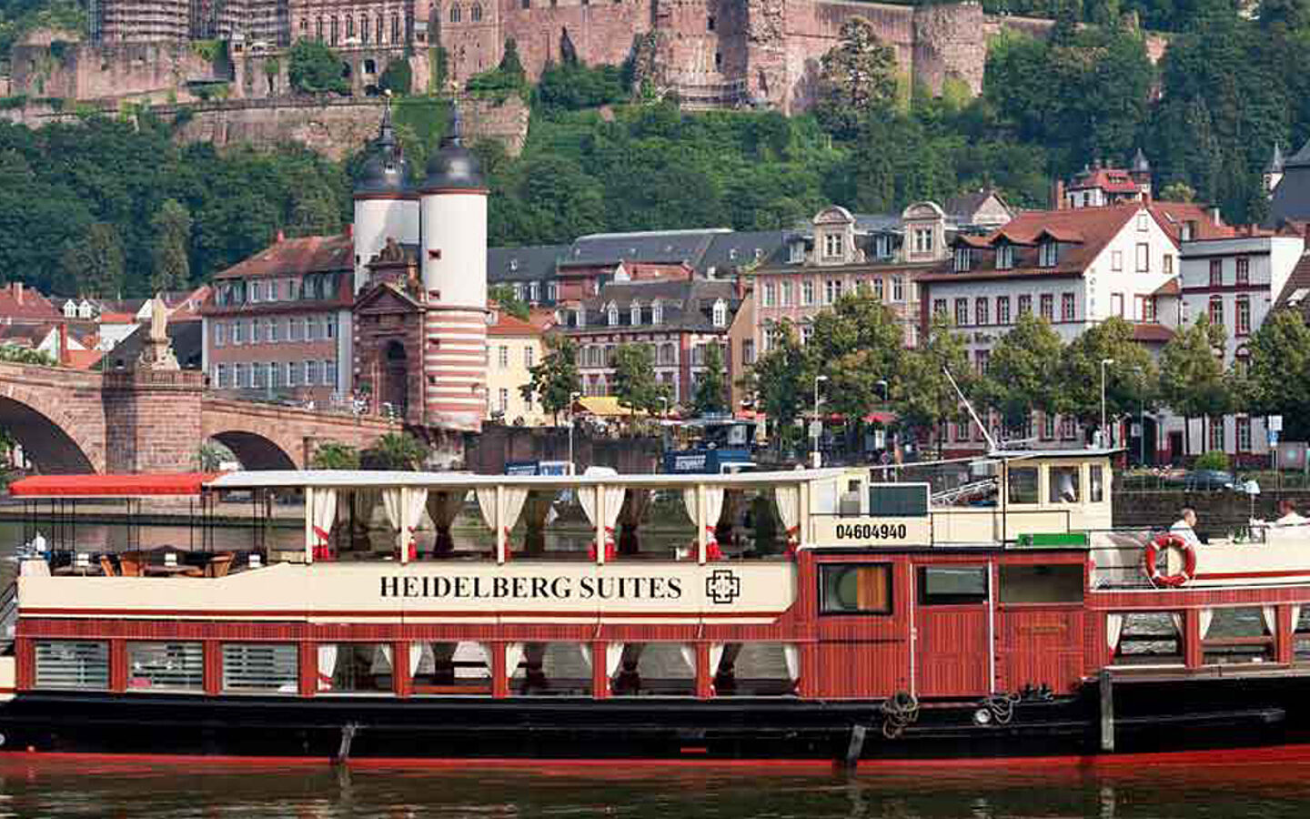 liegt das ebenfalls zur Hütter-Bönan-Gruppe gehörende Schiff Heidelberg Suites Patria: Das außergewöhnliche und modernisierte Schiff eignet sich ideal für ein romantisches Donner oder private Festlichkeiten und Firmenevents. Mit den den Bereichen Restaurant, Oberdeck & Lounge Bar, Captain’s Table und Außenbereich bietet die HS Patria Platz für bis zu 80 Personen im Rahmen eines unvergesslichen Empfangs. Das mediterrane À-la-carte-Restaurant Scharff’s serviert kulinarische Fisch-Highlights, gepaart mit erlesenen Tropfen. Und noch ein kleiner Geheimtipp: Besonders außergewöhnlich wird der Event bei einer Fahrt durch die idyllische Landschaft des Neckartals!