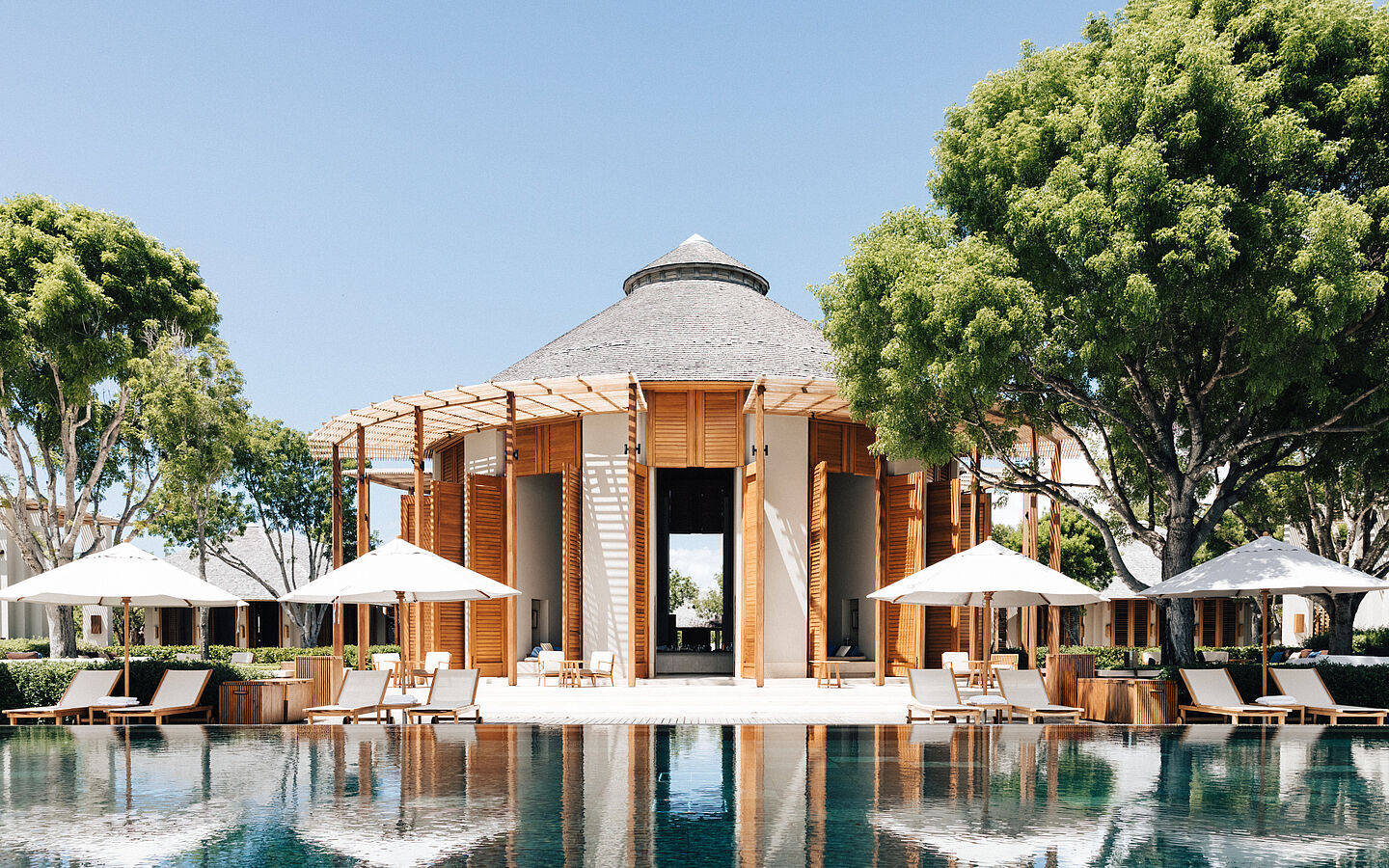 Ursprünglich entwarf der legendäre Jean Michel Gathy die Villen und Pavillons des Amanyara. Sein minimalistisches Design mit eindeutigem Fokus auf der Verschmelzung von Innen- und Außenbereichen ist es, das den Charme des Amanyara ausmacht. Dieser blieb unberührt, nach wie vor verbinden raumhohe Glastüren die großzügigen Schlaf- und Wohnräume mit den weitläufigen Terrassen. Im Inneren der zwischen 65 und 260 Quadratmeter großen Unterkünfte, die teilweise über einen eigenen Pool verfügen, wurden jedoch einige Details ausgetauscht. So haben sie nun neue Möbel, maßgefertigte Betten, tiefe, freistehende Badewannen, moderne Leuchten und eigens angefertigte Spiegel.