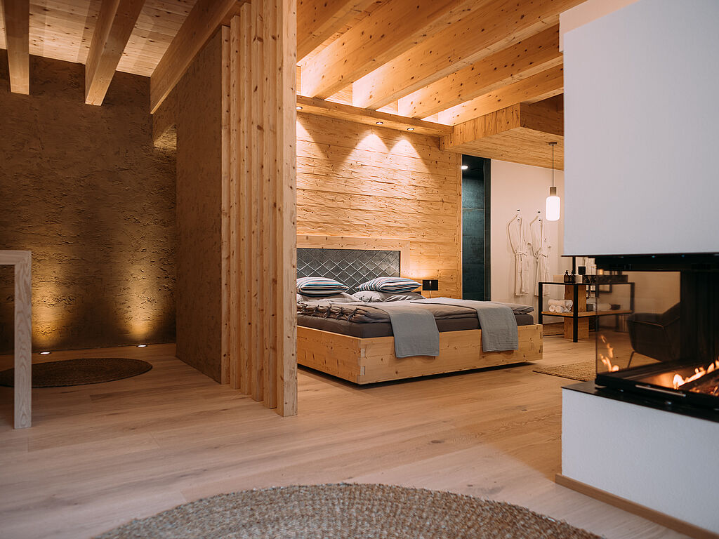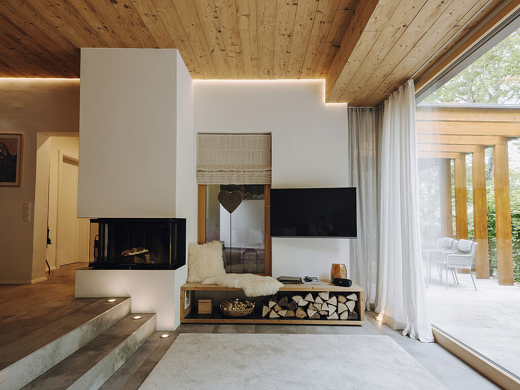 Bei einer luxuriösen Auszeit darf natürlich auch ein Wellnessangebot nicht fehlen, und so sind alle vier Chalets mit einem exklusiven Spa ausgestattet. Im Haus Wasser führt ein privater Aufzug in das untere Stockwerk, in dem sich der Wellnessbereich befindet. Im Spa können die Gäste nicht nur in einer freistehenden Badewanne mit grandiosem Ausblick entspannen, sondern auch auf einem großen, gemütlichen Daybed oder in der Sauna mit freiem Weitblick auf Wald und Fluss relaxen. Ein weiteres Highlight ist der Außenbereich, in dem sich ein Hot Tub und eine Sitzecke befinden – selbstverständlich ebenfalls mit Blick auf die spektakuläre Kulisse. Das Haus Eisvogel bietet als einzige Unterkunft zusätzlich zu Sauna und Hot Tub noch einen Naturpool. Ein einzigartiger Wohlfühlort mit maximaler Privatsphäre.