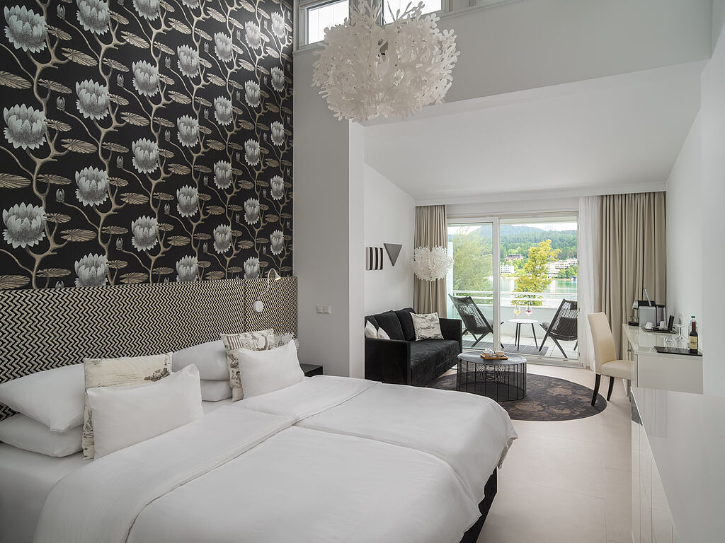 111 Zimmer, Suiten, Lofts und ein Penthouse – alle klimatisiert, viele mit Balkon und traumhaftem Blick auf den See und die Karawanken – bieten den perfekten Rückzugsort.