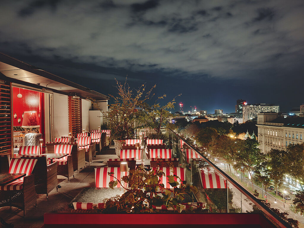 Das Hotel bietet 186 stilvolle und klimatisierte Zimmer und Suiten. Wer es so richtig prunkvoll will, bucht die ausladende Ferdinand Suite: Virtuos arrangiert mit Rundsofa, exotisch anmutenden Palmen, freistehender Jugendstil-Badewanne und privatem Zugang zum Rooftop mit Pool und Ausblick über die Dächer Wiens. Wer es „einfacher" möchte, wird sich in den übrigen Zimmern mit Regendusche, Chaiselongue oder Champagnerbar ebenfalls sehr wohl fühlen.