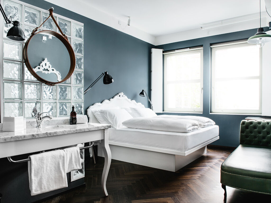 Im Grand Ferdinand gibt es einige Suiten, aber auch einen „Schlafsaal" mit Kronleuchter und Stockbetten aus poliertem Mahagoniholz um gerade einmal 50 Euro pro Bett, auch buchbar über Airbnb. Denn Weitzer sieht ein Hotel als kulturellen Auftrag, der für alle und jeden zugänglich sein sollte.