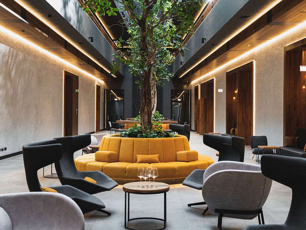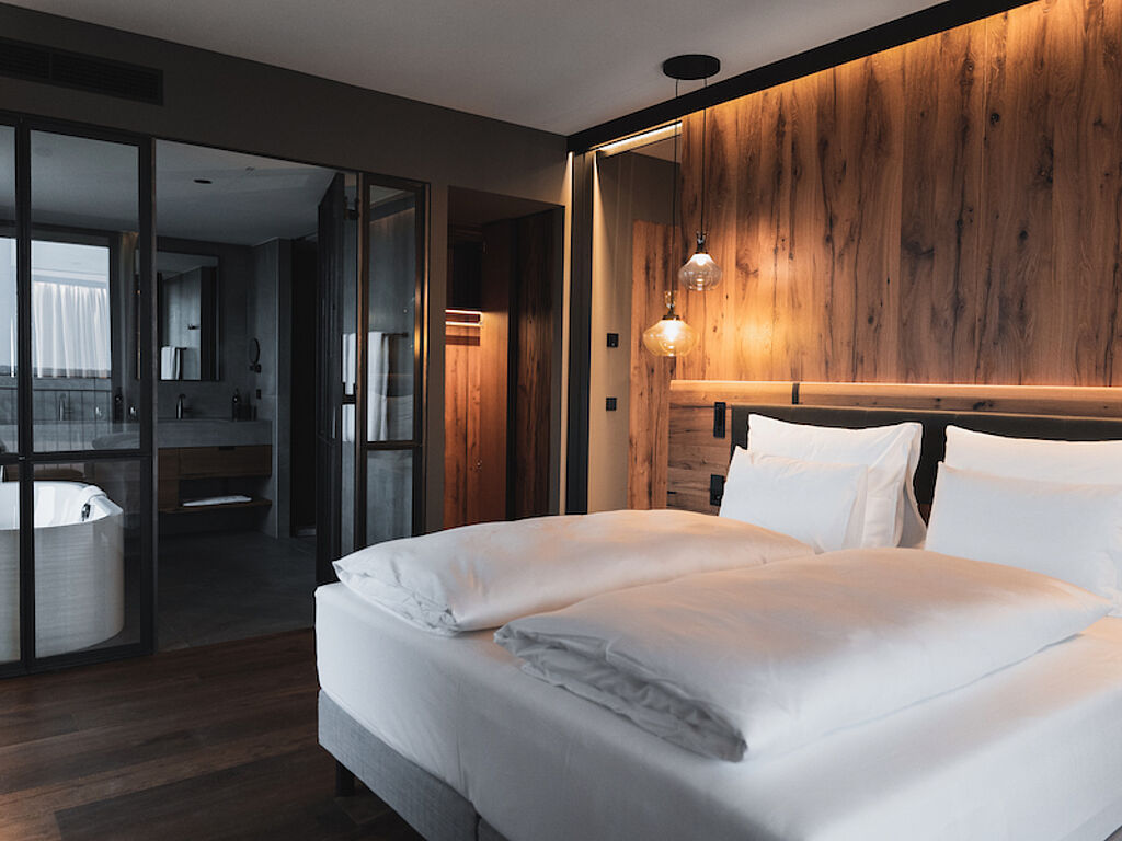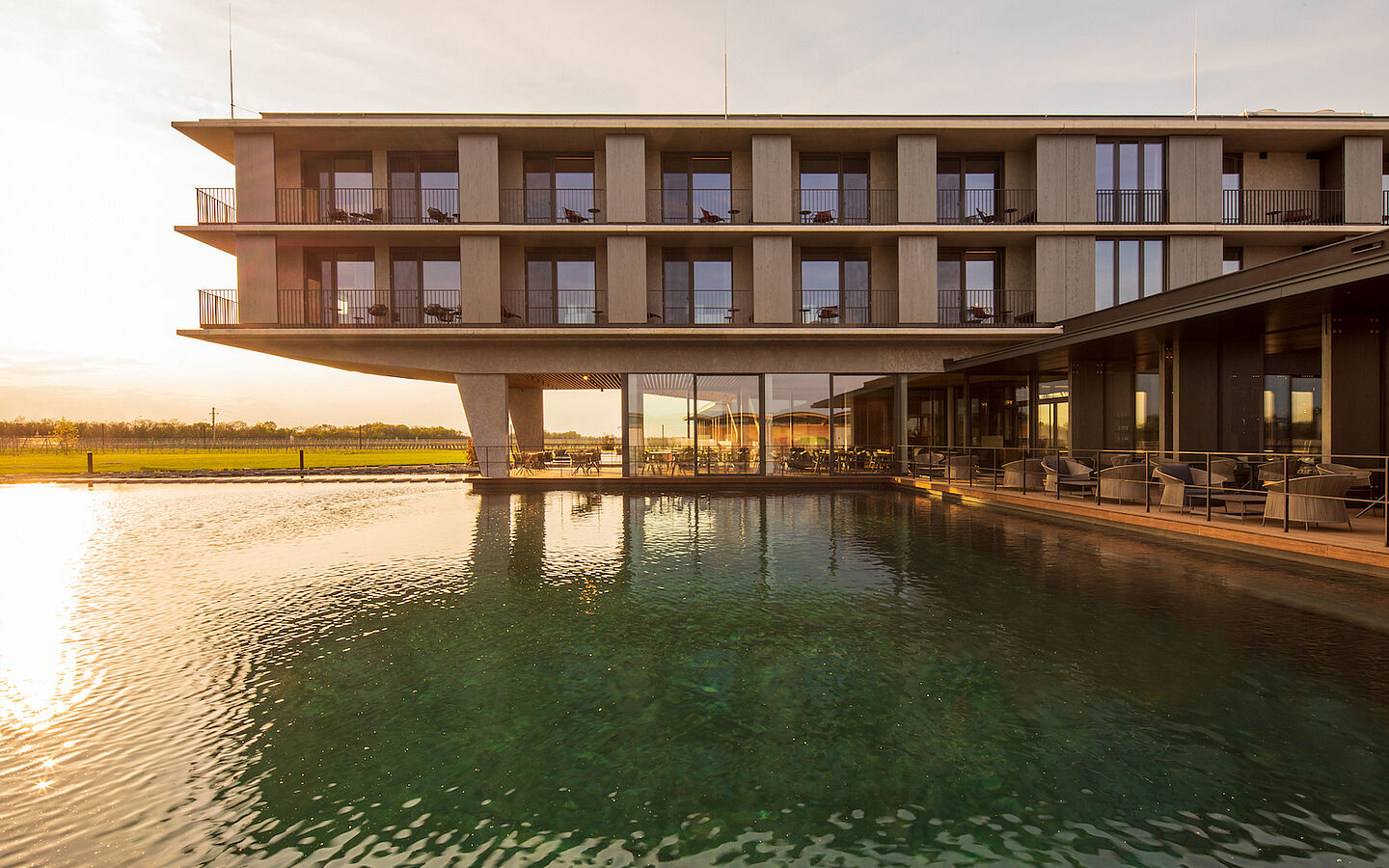 Mit Arkan Zeytinoglu konnte ein renommierter Architekt für die Planung und das Design-Konzept gewonnen werden. Das Hotel in der Bauweise des typisch burgenländischen Angers verfügt über 118 Zimmer und Suiten mit Balkon, die sich lässig luxuriös präsentieren. Minimalistisch eingerichtet, bieten sie durch hochwertige Hölzer, feine Stoffe und gedeckte Naturtöne einen behaglichen Platz zum Wohlfühlen.