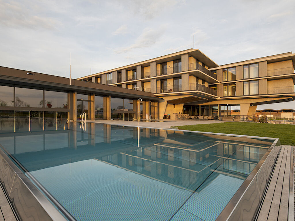 Ein weiteres Highlight des Wein-Wellness-Resorts ist der großzügige Spa-Bereich. Auf 4.000 m² erwartet den Gast ein Indoor- und Outdoor Pool sowie eine Saunalandschaft mit Textilsauna, Kräutersauna, Dampfbad sowie finnischer Sauna im Innen- und Außenbereich. Dazu kommen verschiedene Massagen und Kosmetikbehandlungen. Wer etwas für seine Ausdauer und Kondition tun will, findet im Fitnessbereich modernste Geräte vor. Für die jüngeren Gäste gibt´s die Youngstar Waterworld mit Baby Pool, Kids Pool, Wasserspielewelt und einer Trio-Slide-Rutsche.