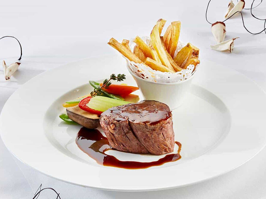 Königlichen Hochgenuss bietet auch das Restaurant mit Haubenküche: Ob Kaminzimmer, Schreibzimmer, Fürstenzimmer, Gotisches Zimmer, Windsor Stube, Glashaus oder Sport- und Shootingclub – die Schlossküche bietet regionale und internationale Köstlichkeiten aus frischen Zutaten vorwiegend aus der Region. Märchenhaft sind auch die Möglichkeit für Feiern, etwa im Glashaus oder auf einer der Terrassen - mit lieben Freunden, qualitativem Service und dem herrlichen Blick auf die Berge.