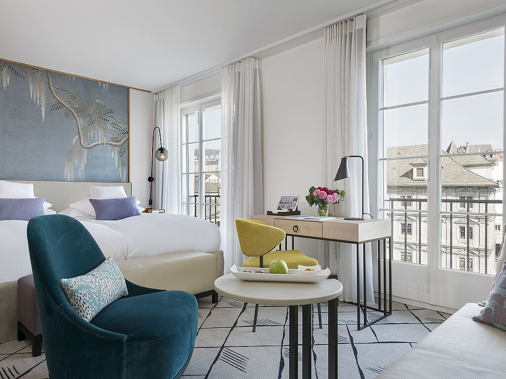 Küchenchef Stefan Jäckel, der sich bereits 16 Gault&Millau-Punkte und einen Michelin-Stern erkochte, bezaubert seine Gäste neuerdings im Restaurant ‚La Rôtisserie’ mit lukullischen Hochgenüssen der klassischen, aber innovativen Sorte. Einen besonderen Blickfang bietet die Terrasse: Hier werden ausgesuchte Köstlichkeiten mit Aussicht auf den Limmat, das Grossmünster und die Berge serviert. Jeden Sonntag wird mit einem vielfältigen Brunch dem süßen Nichtstun gefrönt. Fans des blauen Dunstes werden in der ‚Cigar Bar’ mit feinem Rauchwerk verwöhnt, ein Absacker nach einem anstrengenden Tag ist in der ‚Barchetta’ möglich, die zugleich auch als Eisbar und Espresso-Ausschank dient. Sehr beliebt ist auch die Dachterrasse 'The Nest'.
